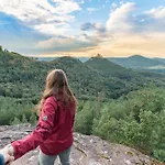 Das 80 m^2 große Romantic-Apartment, Dachterrasse, Waldblick, Maisonette, Free Coffee, 90M2 in Annweiler am Trifels befindet sich rund 25 Gehminuten von der Burg Scharfenberg und circa 3 km von der Reichsburg Trifels entfernt. Das 2-Zimmer-Apartment hat eine sonnige Terrasse mit auf Blick die Berge.